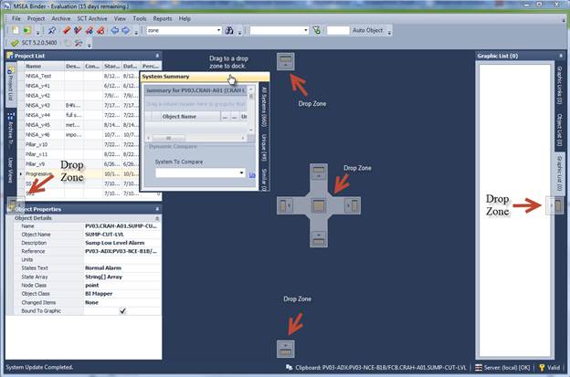 In addition, each of the tab windows can be auto-hidden or docked open by toggling the pushpin symbol in the top right corner of a window. Auto-hidden tabs will retract the window to save space when you are not using the window.