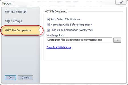 The GGT makes several modifications to XAML files uploaded into an SCT database which, although they do not affect the appearance or functionality of a graphic, do interfere with object comparison. This option normalizes the data used for object comparison after it has been loaded into the comparator – i.e. no file or database content is modified in any respect. The chief modification the GGT introduces is to reorder the namespace declarations at the beginning of the XAML document and also adding local file paths to images; enabling this option mirrors these changes on the file side (again, no data is modified) and is in effect required to do productive work with the comparator. With future or legacy versions of the GGT, this may vary.