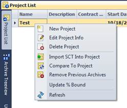 This view allows you to view and select the project that you are working on. When a project is selected, the archive database will be loaded in the archive tree view. You must create a project before an SCT can be imported in the database.