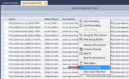 Right click on the columns to show the context menu. Click on “show find panel” or use CTRL-F.