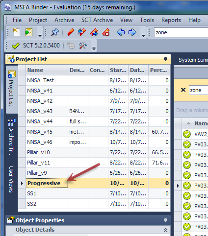 To import a SCT database, you must first select a project or create a new one. Select the appropriate project from the project list.