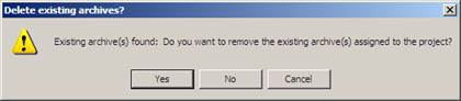 Answering YES will delete all archives that were already loaded into the project. Answering NO will import the information on top of existing imports on the same project. Keeping an existing import into a project allows you to do database comparisons on previous versions.